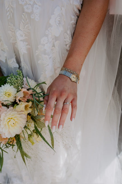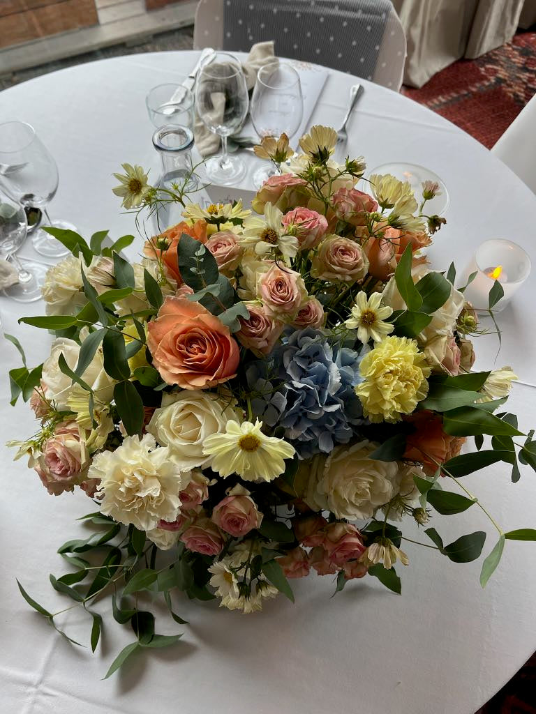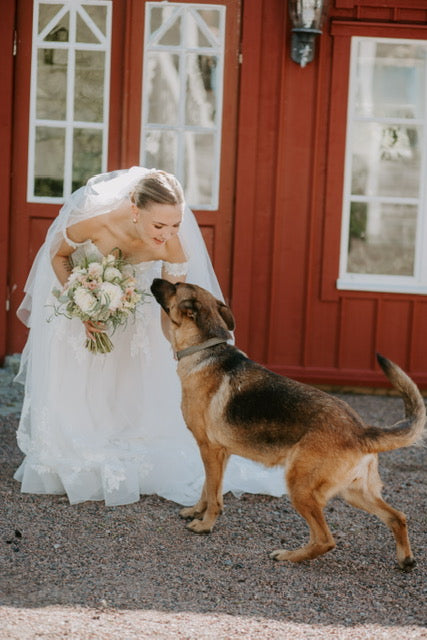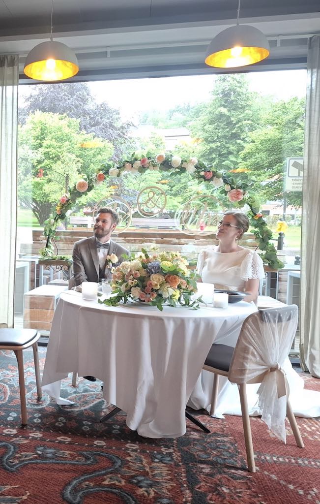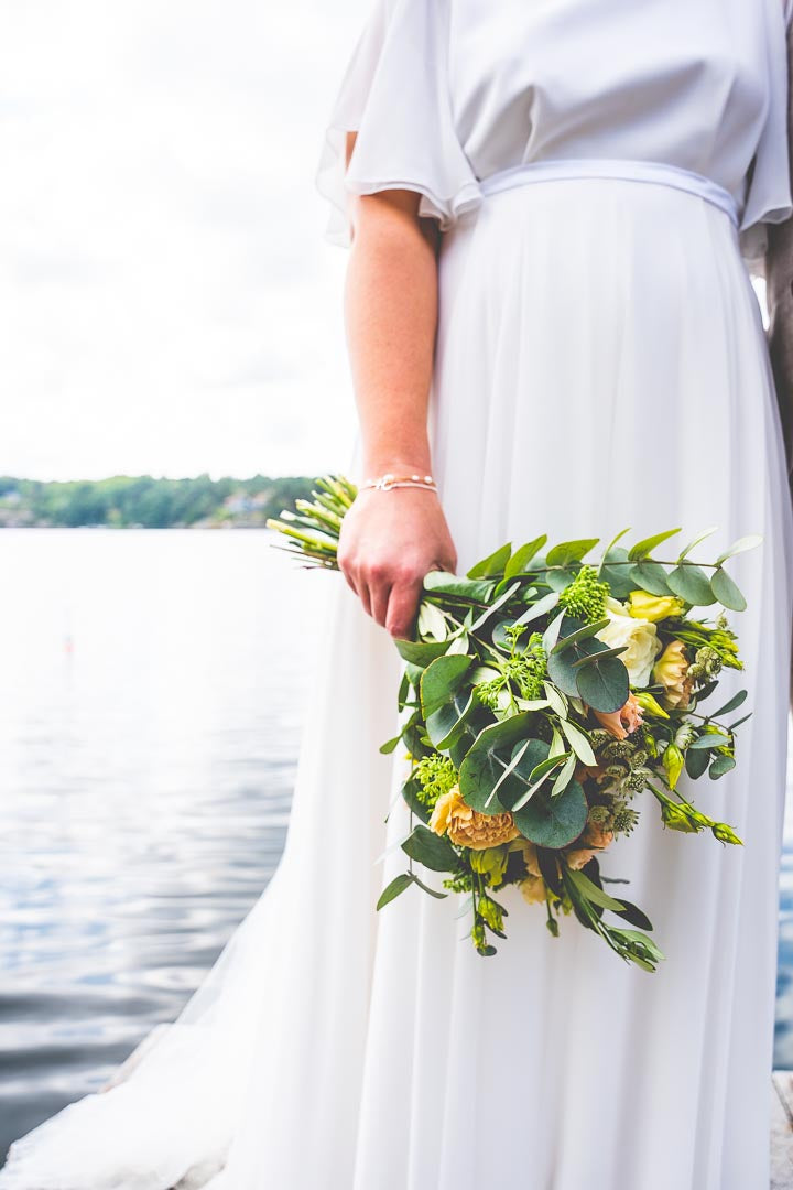 Vi startar upp våra bröllopsarbeten med ett första möte, digitalt eller fysiskt i vår butik. Vi går igenom era önskemål, pratar färg, form och om vilka blommor som är i säsong. Därefter får ni en sammanställning med moodboard och offert. Vi gör eventuella korrigeringar och landar i en bra plan. När offerten är godkänd betalas en deposition och bröllopet bokas in hos oss.