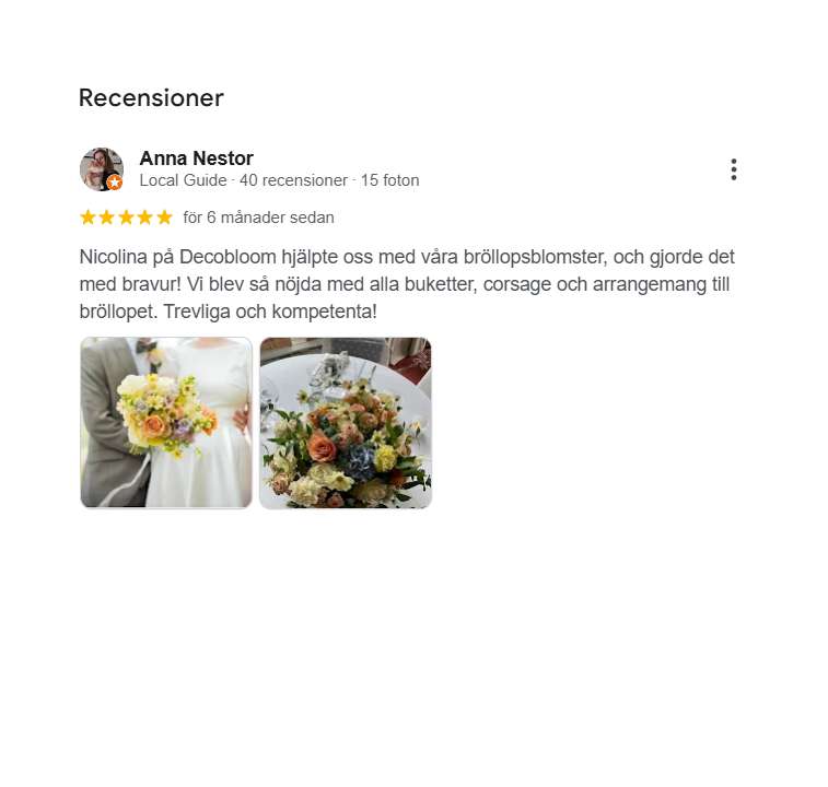 Välkommen till en härlig bröllopssäsong med oss på decobloom. Vi gör allt från magiska bröllopsbågar och arrangemang till bordsdekorationer och givetvis brudbuketter och blommor till brudföljet. Alltid med stor passion, kreativitet och engagemang.