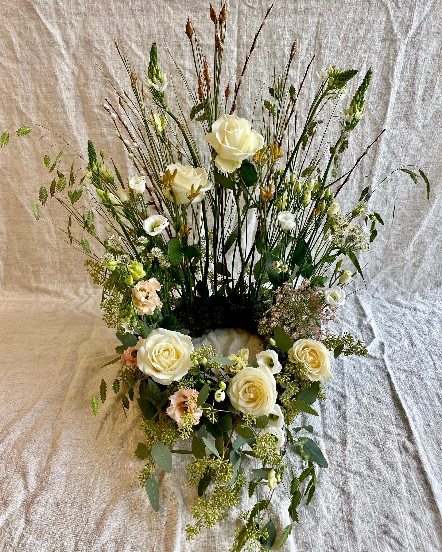 Urndekoration i creme och puderrosa